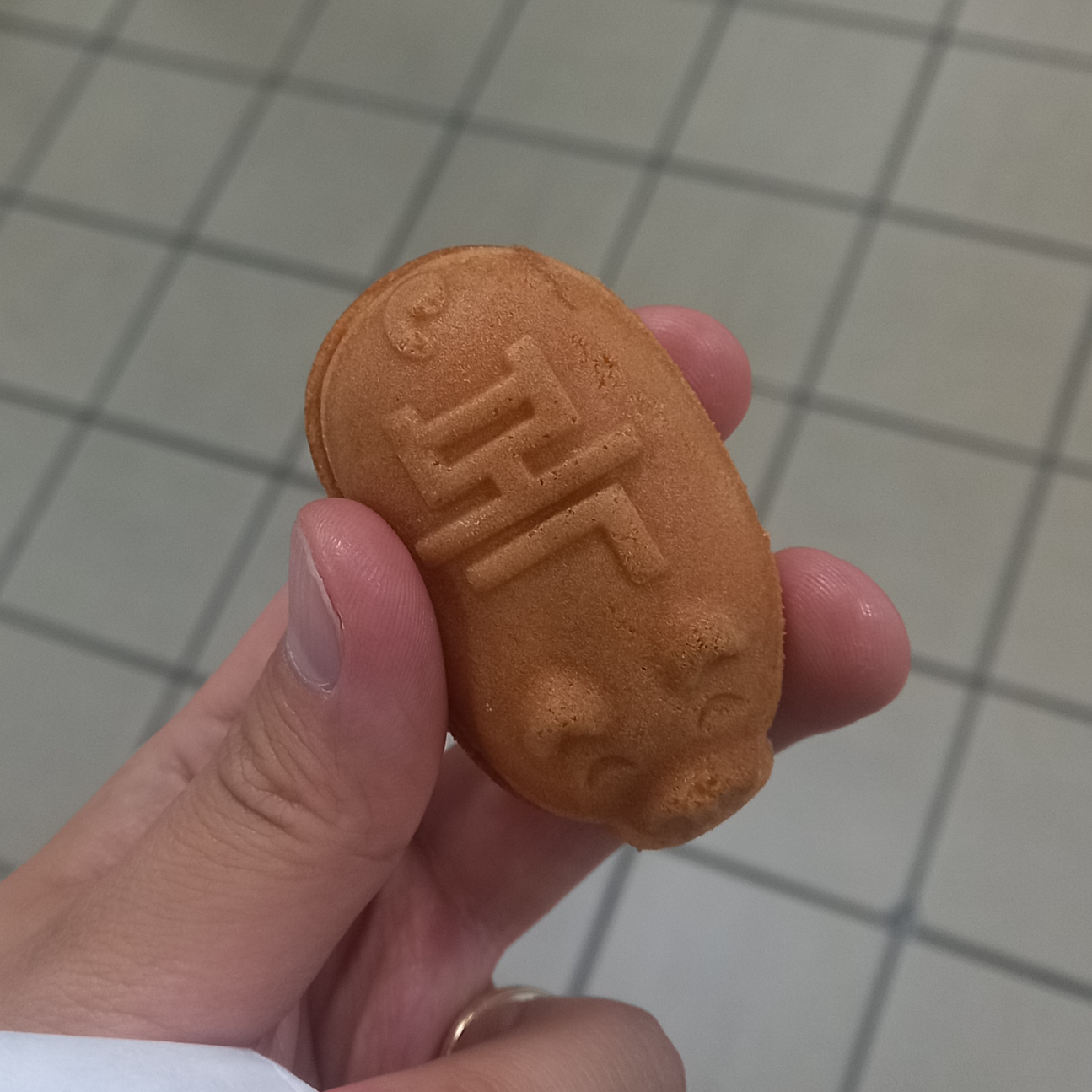 영등포 구청역 근처 결혼식장에 갔다가 돌아오는 길, 지하철역 안에서 고소한 냄새가 났다. 만쥬 가게가 근처에 있나 싶었는데, 가까이 가보니 돼지 모양을 한 빵이었다. 슈크림, 팥, 초코 이렇게 3가지 맛이 있었으며, 빵 위에 큼지막하게 "복"이라고 써 있었다. 얼굴, 귀, 다리, 꼬리 등이 꽤나 디테일하게 표현되어 있었다. 하지만 개인적으로 나는 그냥 평범한 만쥬가 더 맛있었던 것 같다.